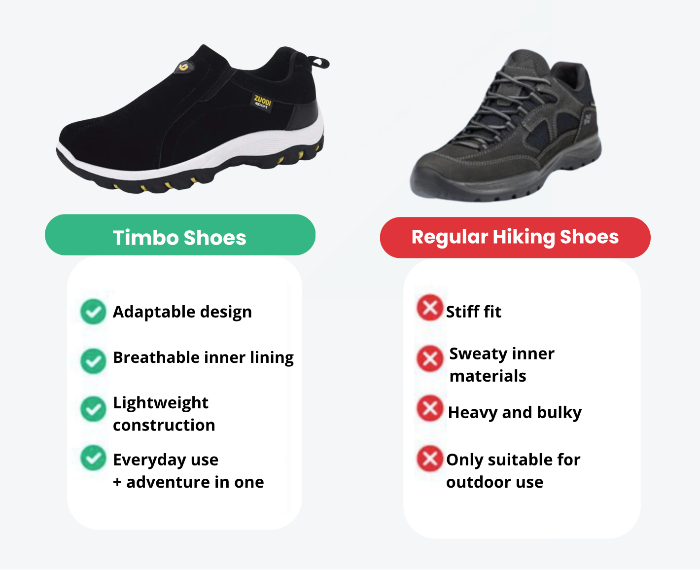 Many conventional shoes are stiff, heavy, and promote perspiration, often leading to pressure points, foot pain, or fatigue. Timbo™ shoes were designed specifically to prevent these problems.